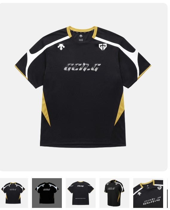 2026년 젠지의 새로운 유니폼은 전통적인 검정색과 금색의 조화를 유지하면서도, 현대적인 기하학적 패턴을 가미해 세련미를 더했습니다.