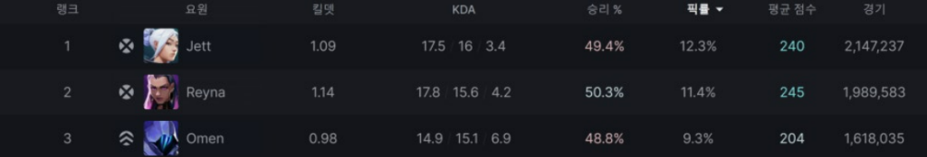 라이엇 게임즈가 공개한 통계에 따르면 제트는 전 세계적으로 가장 높은 선택률을 기록하는 요원 중 하나인데요.